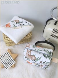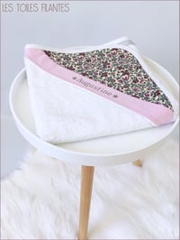 Cette cape de bain est personnalisable dans les tissu de votre choix. A associer au reste de la chambre de bébé pour une déco toute en harmonie.